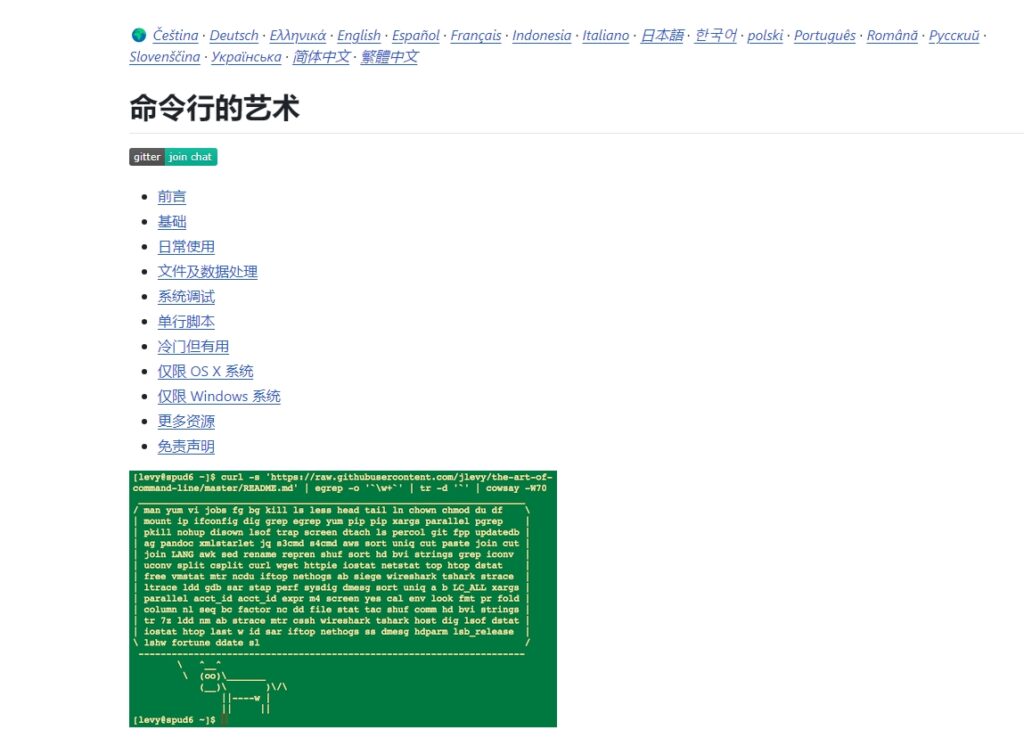 命令行的艺术 发布于2024年11月15日 作者:JamesChan https://github.com/jlevy/the-art-of-command-line/blob/master/README-zh.md